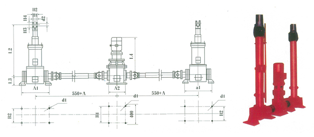 注:表中L1和L2项中的S为所需要行程mm,A3项中的A为推杆之间中心距的增加值,用户在订货时确定。如以上规格不能满足用户需要本厂可为用户特殊设计。 |